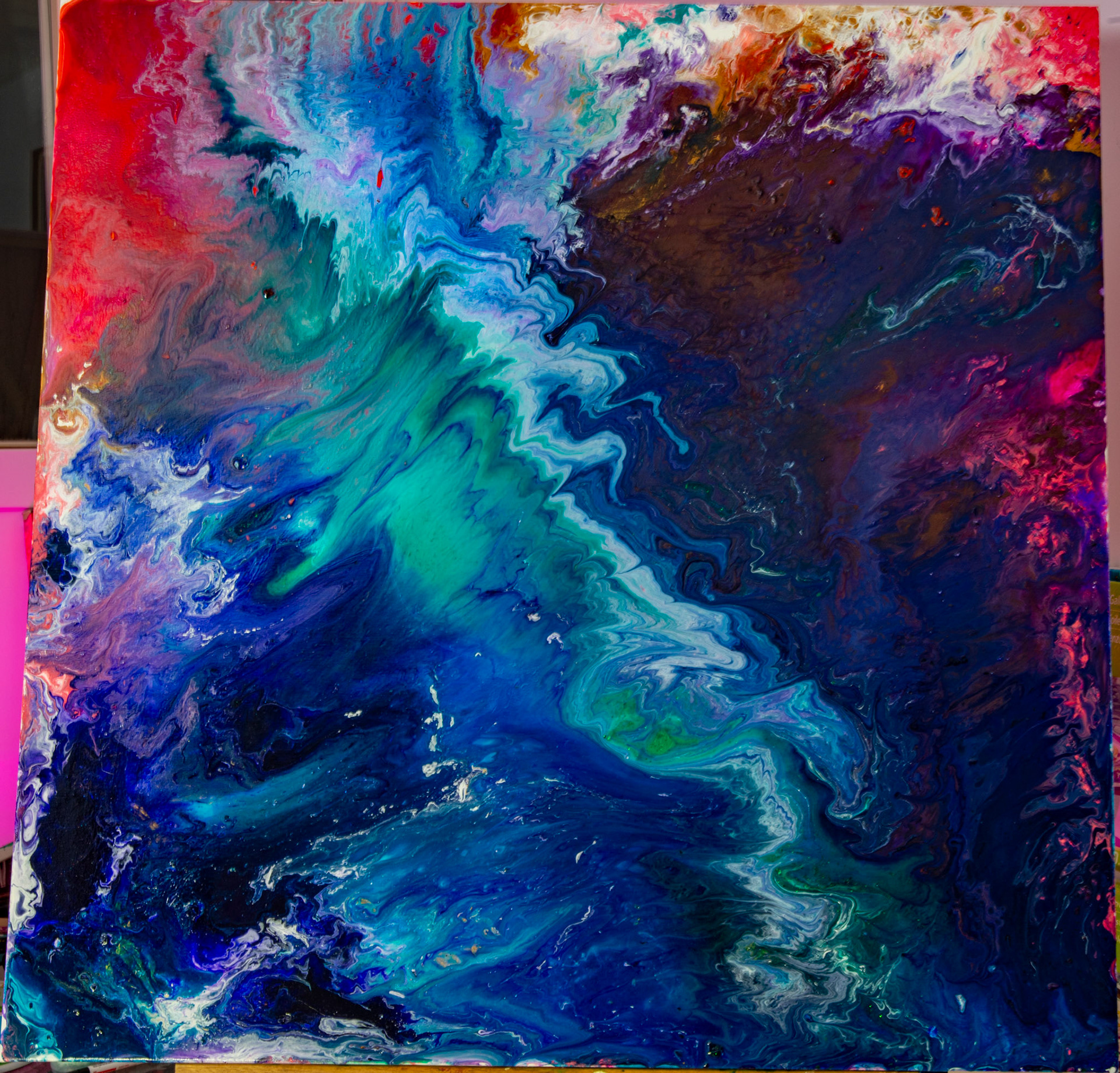Fluid art can also be part of custom art based on the colors of your choice! 4 of 5 pieces of fluid art I did in 2023 found their forever homes! The only one left available from that collection is the red one often referred as the volcano!